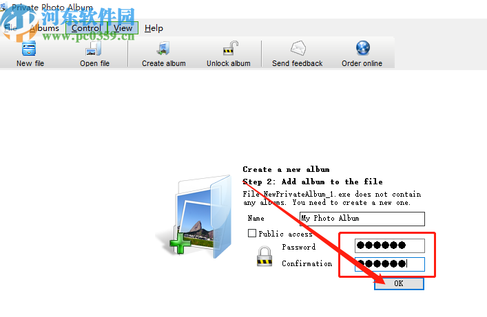 2.取消勾选之后我们就可以在下方的输入密码位置处输入我们想要加密相册的密码了,根据用户的具体需求输入即可。