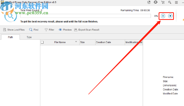 2.点击Scan按钮之后软件就开始自动扫描了,在界面中会显示软件的扫描进度,同时我们可以控制暂停或停止扫描。