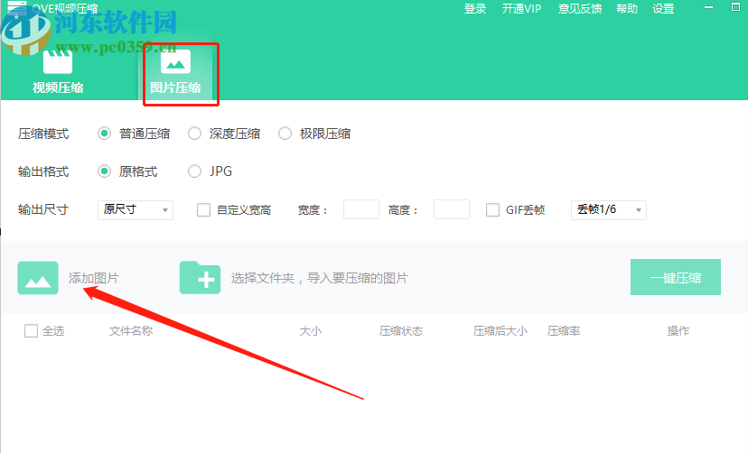 1.首先第一步我们打开软件之后在软件界面中切换到图片压缩这个功能,切换到图片压缩功能之后点击其中的添加图片按钮。