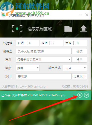 6.点击停止录制之后软件会自动保存录制好的视频,并且在软件界面的下方会显示已保存,点击播放按钮即可播放录制的视频文件。
