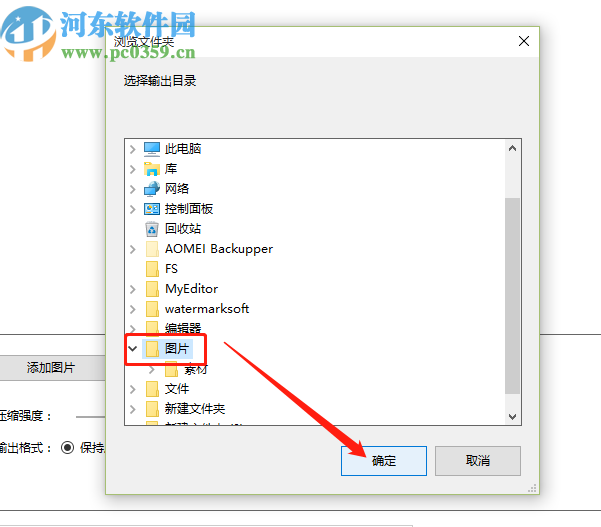 2.点击这个添加文件夹按钮之后,就可以在出现的界面中选择想要压缩的图片所在的文件夹了,选中之后点击确定按钮。