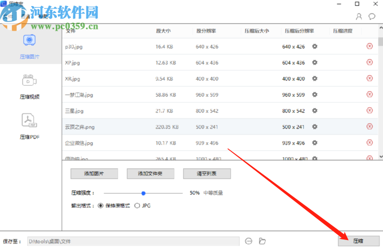 6.最后一步我们在设置好输出路径之后就可以点击界面右下角的压缩这个功能按钮开始批量压缩图片文件了。