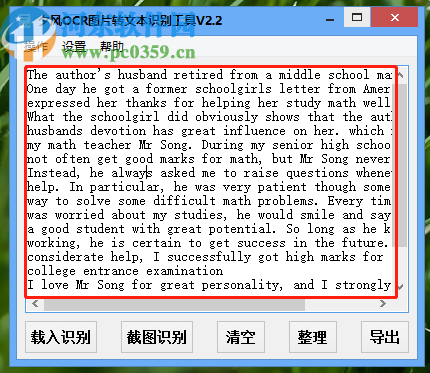 3.点击打开按钮之后软件就会自动识别我们选中的图片文件中的文字内容了,等到识别完成之后在界面中会显示识别结果。