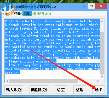 4.然后下一步我们点击界面右下角的导出功能按钮,可以将识别出来的文字内容保存到电脑中。