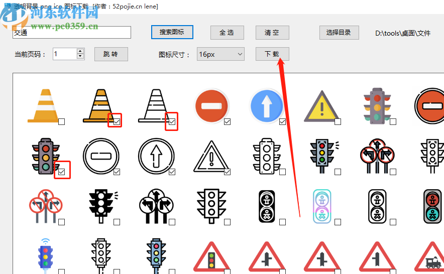 5.最后一步我们只需要在界面中点击勾选自己想要下载的一些图标,全部勾选之后点击界面中的下载按钮就可以进行下载了。