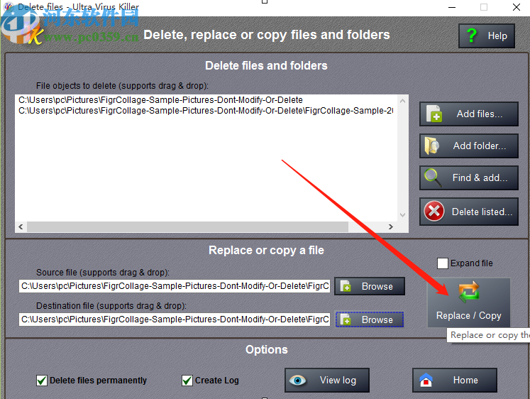 6.最后等到被替换的文件和想要替换的文件都选择完成之后,点击界面中的Replace/copy这个替换或复制的按钮就可以进行替换文件的操作了。