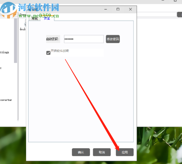 5.设置好启动密码之后,我们勾选界面中的开启软件加密这个功能选项,然后点击界面右下角的应用按钮即可成功设置启动密码。