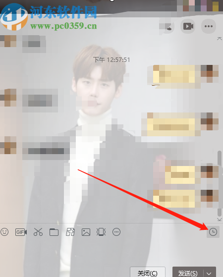 2.进入到聊天消息界面之后点击界面右边的时钟图标,也就是查看聊天记录的图标,找到之后点击进去。