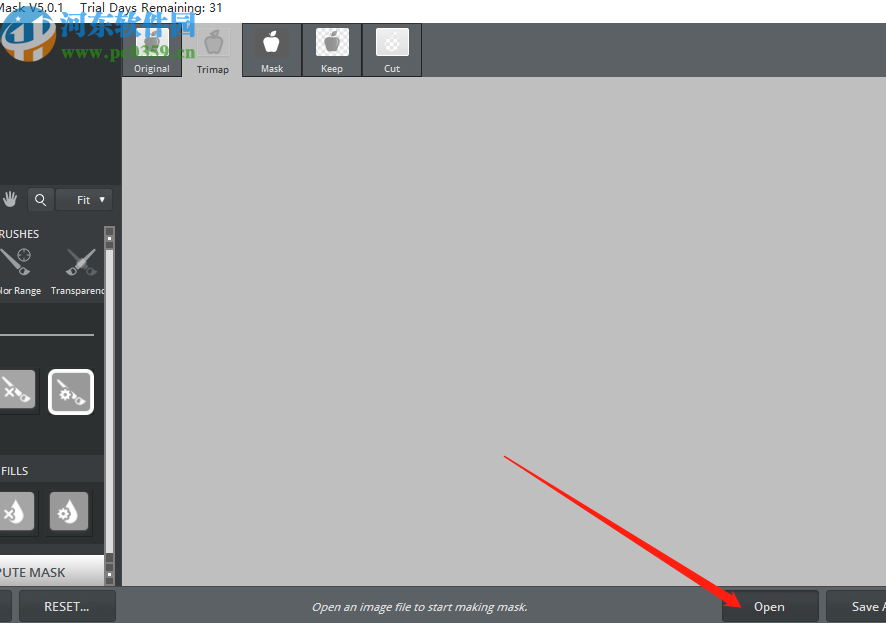 1.首先第一步我们打开这款软件之后在软件界面的右下方找到Open这个功能按钮,找到之后点击它即可添加需要抠取的图片。