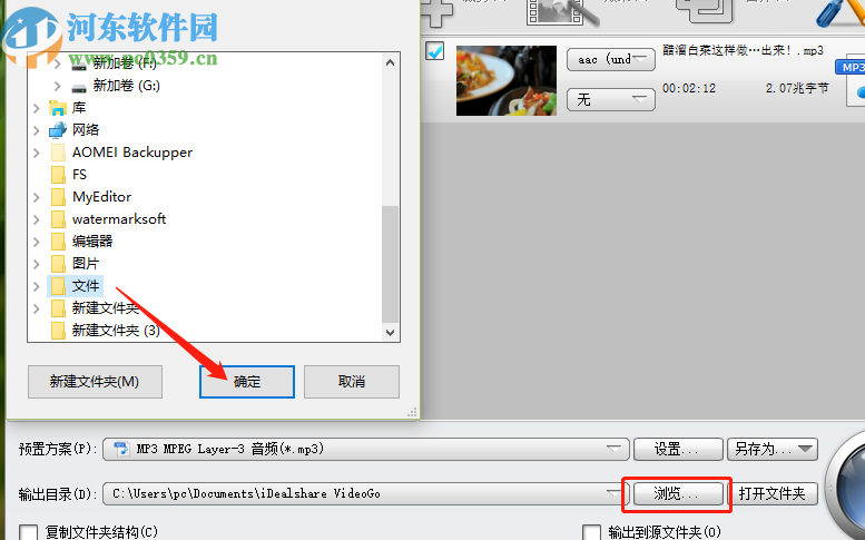 4.选择好转换音频文件的格式之后,我们点击下方的浏览按钮可以修改文件转换之后的输出储存位置,如下图中所示。