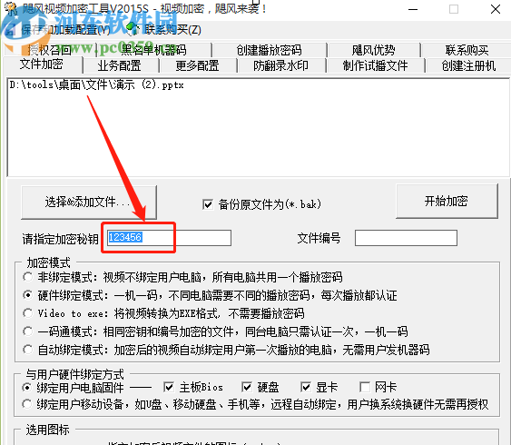 3.点击打开按钮将需要加密的文件添加到软件界面之后,我们就可以设置加密文件的密码了,在“请指定加密秘钥”这个输入框中输入加密密码即可。