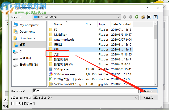 2.点击添加目录按钮之后就会打开选择文档所在文件夹的步骤了,我们需要在这个界面中找到想要替换内容的Word文档所在的文件夹,找到之后选中它点击右下角的Choose按钮。
