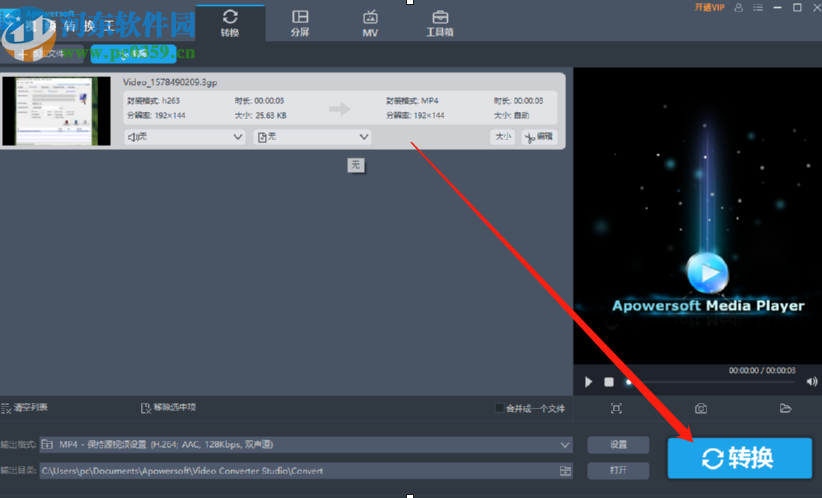 7.设置好水印之后我们回到软件的主界面,然后点击界面右下角的转换这个功能按钮就可以开始给视频添加水印的操作了。