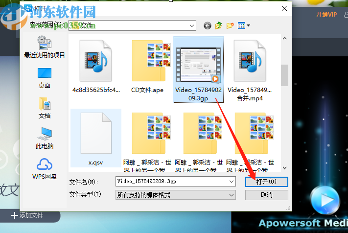2.点击添加文件按钮之后会打开一个选择文件的界面,在这个界面中我们选中目标视频文件之后点击打开按钮。