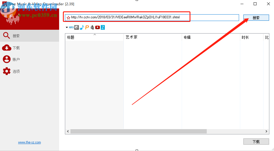 2.将我们想要下载的音乐链接复制之后粘贴到这个输入框中,然后点击右边的搜索按钮进行搜索。