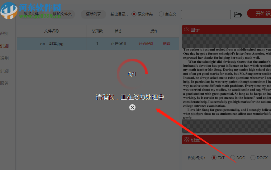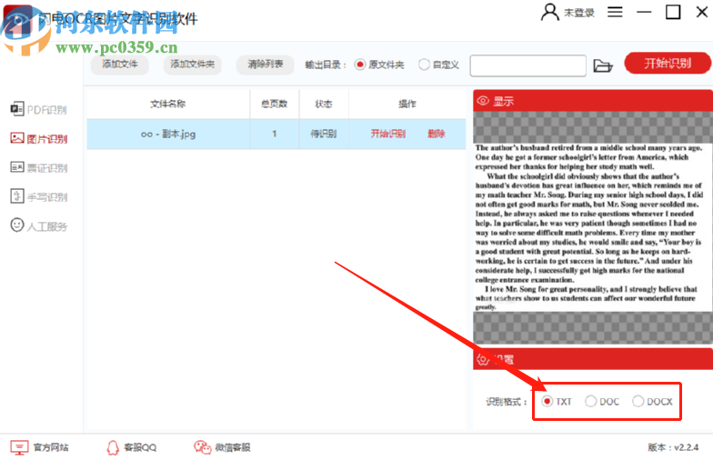 4.选择好想要识别保存的文件格式之后点击界面中的开始识别按钮即可开始识别图片文字的操作。