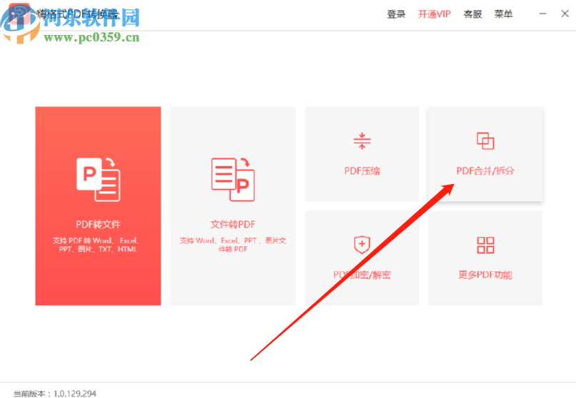 1.首先第一步我们打开软件之后在软件主界面中点击PDF合并/拆分这个功能图标,然后进入到合并拆分的功能界面。
