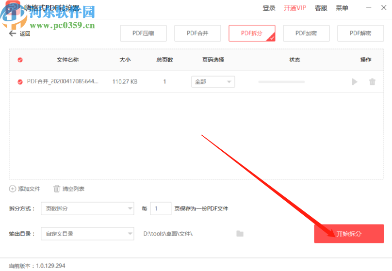 7.最后一步我们在完成上述操作之后,点击界面右下角的开始拆分这个功能按钮就可以开始拆分文件的操作了。