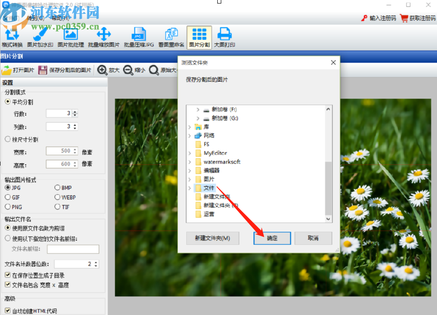 6.点击保存分割图片的按钮之后我们就可以在出现的界面中选择分割之后的图片想要储存的位置了,选择之后点击确定按钮即可开始分割保存图片。