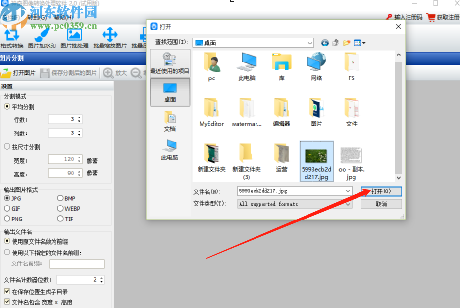 2.点击打开图片这个功能选项之后,我们就可以在出现的选择文件界面中来选择想要分割的图片文件了,并点击打开按钮。