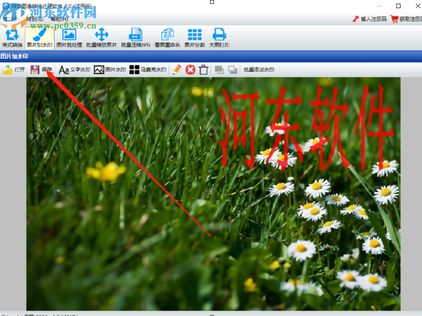 6.最后我们设置好文字水印的效果之后,在图片中可以看到水印的预览效果,点击左上方的保存按钮即可将添加水印之后的图片保存下来。