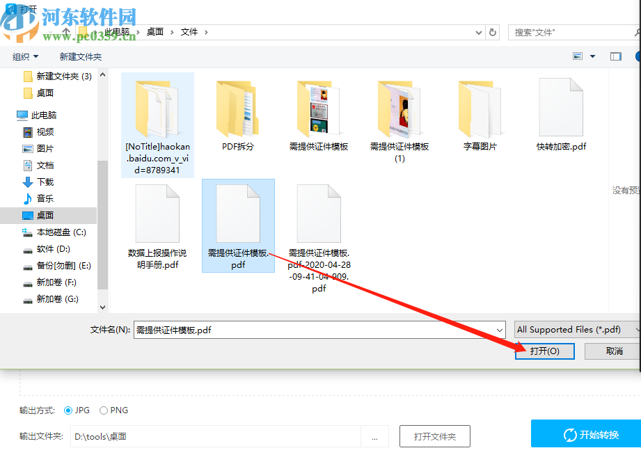 2.点击选择文件按钮之后界面中会出现一个选择文件的界面,在这个界面中我们选中想要提取图片的PDF文件,选中之后点击右下角的打开。