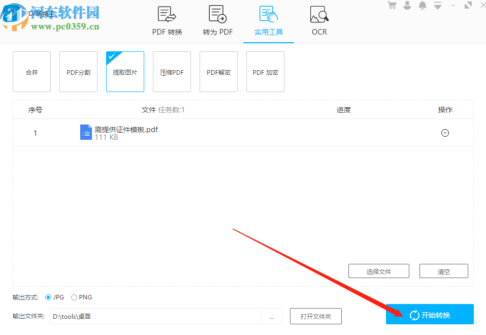 4.选择好输出格式之后我们点击界面右下角的开始转换按钮即可开始提取图片的操作。