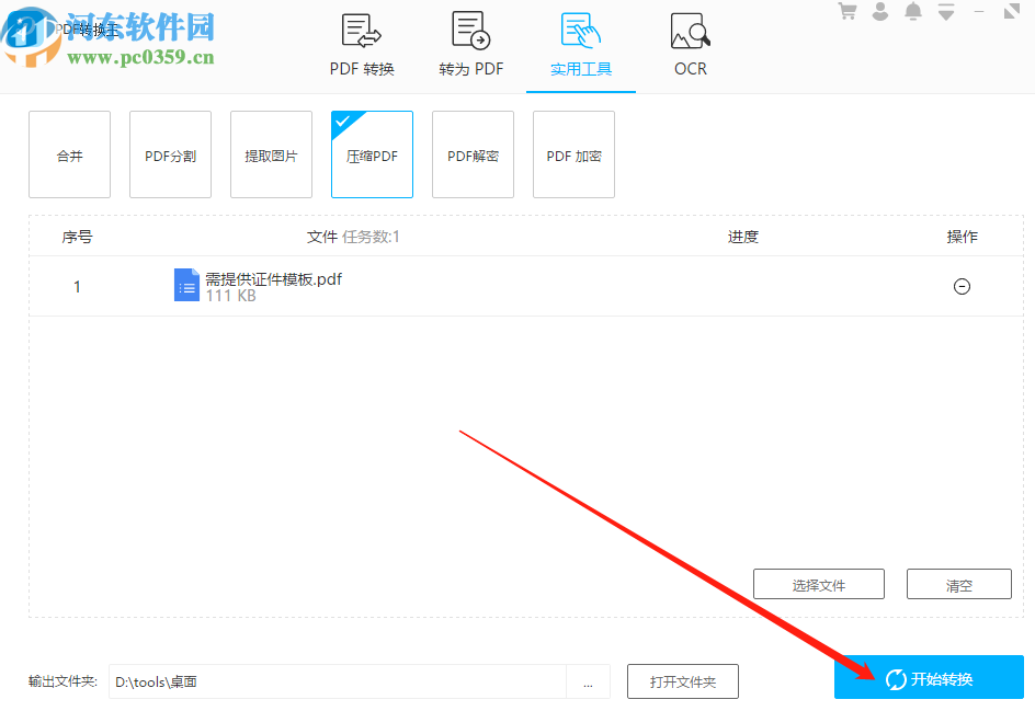 5.最后我们根据自己的需求来设置好压缩文件的输出目录之后,点击界面右下角的开始转换这个功能按钮就可以开始转换压缩PDF文件了。