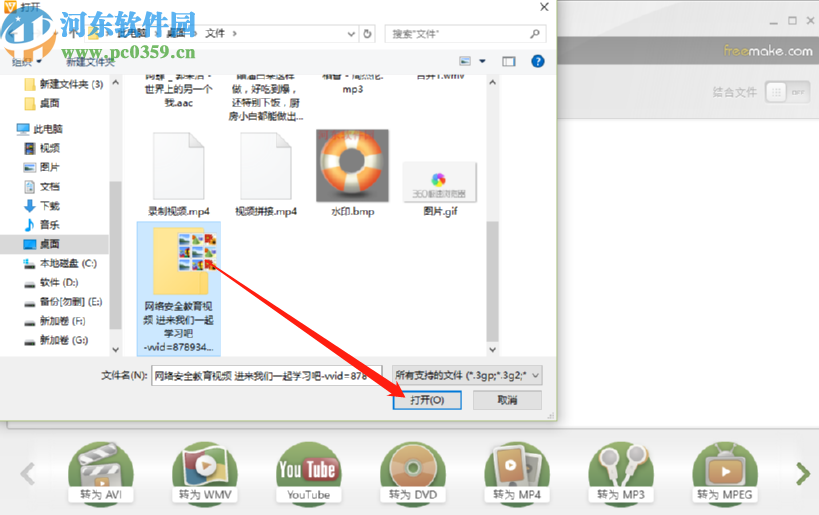 2.点击添加视频按钮之后下一步会出现一个选择视频文件的界面,我们根据自己的具体情况选择之后点击打开。