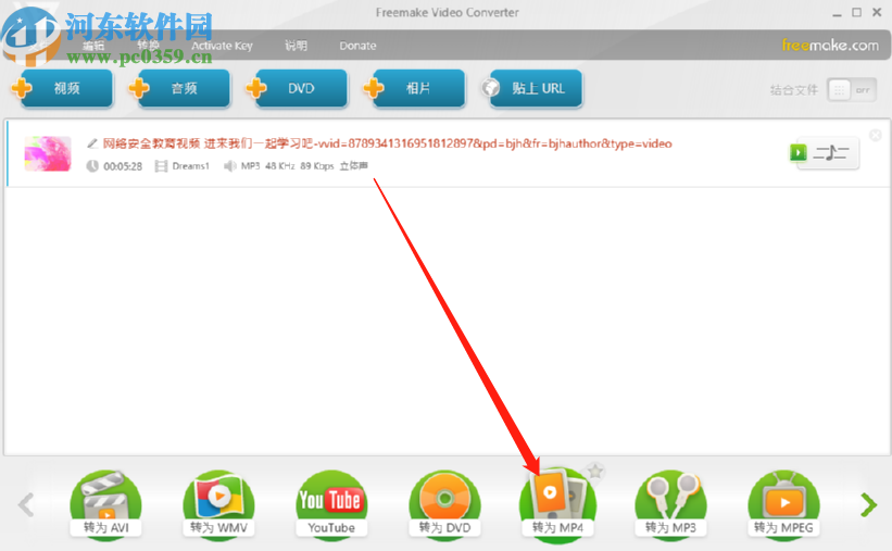 6.点击OK按钮之后回到软件的主界面中,然后我们点击界面下方转为MP4这个功能图标,如下图中所示。