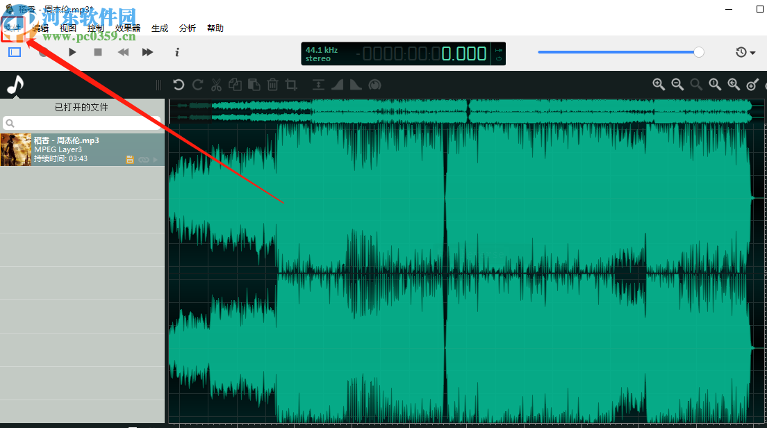 4.点击反向之后我们就可以看到界面中的音频轨道发生变化了,然后用户可以进行其他的编辑操作,编辑完成之后点击左上角的文件选项卡。