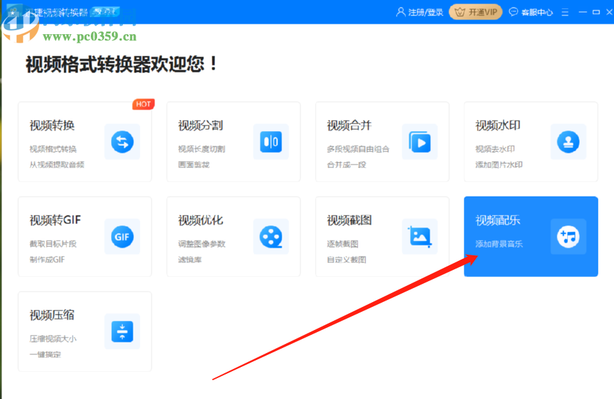 1.首先第一步我们打开软件之后在界面中点击视频配乐这个功能模块,进入到添加配乐的功能界面。