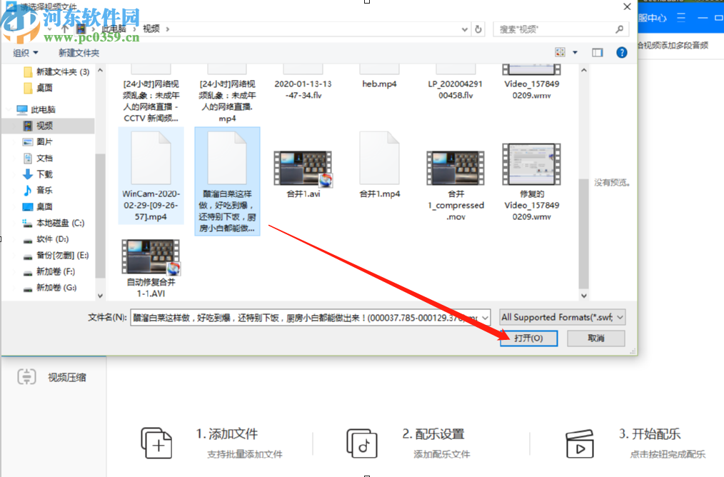 6.打开选择配乐的界面之后我们找到想要添加的配乐文件,选中之后点击右下角的打开按钮就可以了。
