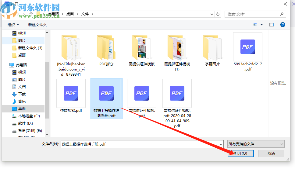 2.点击加号之后就会打开选择文件的界面了,我们选中自己想要添加到收藏夹的那一个PDF文件,选中之后点击打开按钮。
