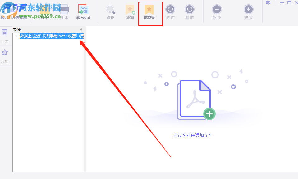 5.最后等到添加成功以后,我们点击界面上方的收藏夹功能,打开收藏夹之后就可以看到自己添加的那一个PDF文件了。