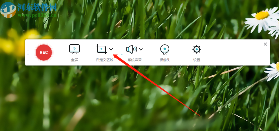 2.录制插件安装完成之后就会自动打开下图所示的一个录制操作界面,我们点击其中的自定义区域这个功能选项。