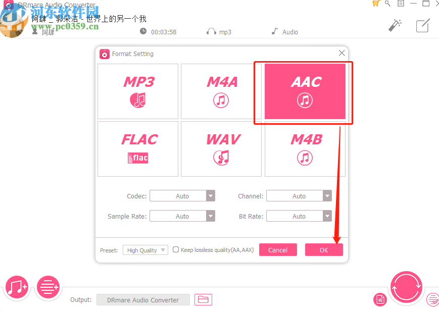 以上就是小编今天跟大家分享的使用DRmare Audio Converter这款软件来将MP3转换成AAC格式的操作方法了,有需要的朋友赶紧试一试小编分享的方法吧,希望能够对大家有所帮助。