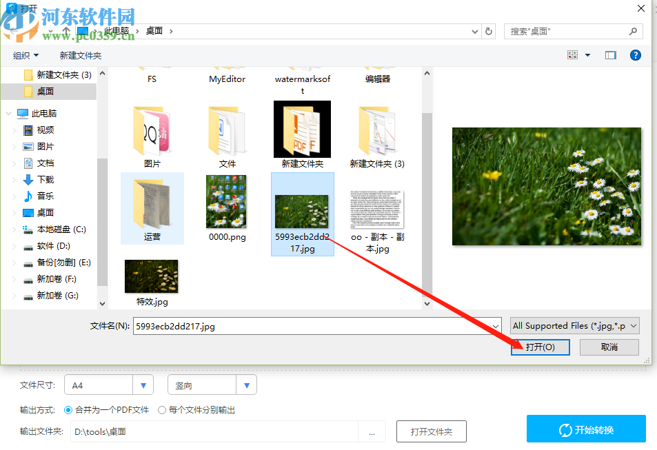 2.点击选择文件按钮之后就会打开一个选择文件的界面了,在其中选中目标图片之后点击右下角的打开按钮。