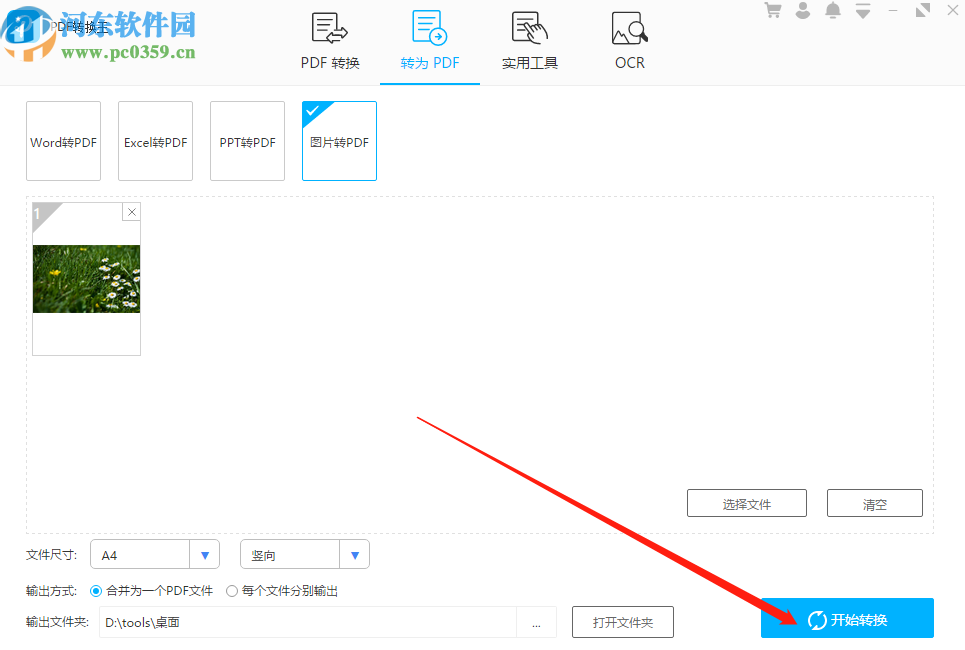 5.最后设置好以上转换参数之后,我们点击界面右下角的开始转换按钮就可以开始将图片转换成PDF文件的操作了。