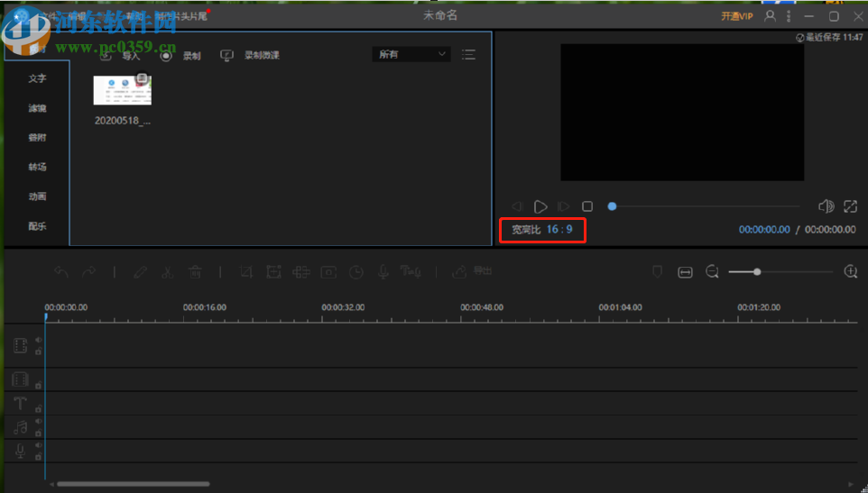 6.经过上述步骤的设置之后,我们再次打开软件,就可以直接进入到编辑界面了,并且宽高比显示为我们选择的默认宽高比,如下图中所示。