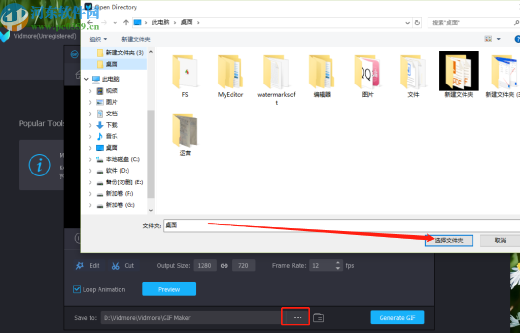 7.选择好储存文件夹之后,最后一步就可以点击界面右下角的Generate GIF这个按钮开始转换GIF的操作了。