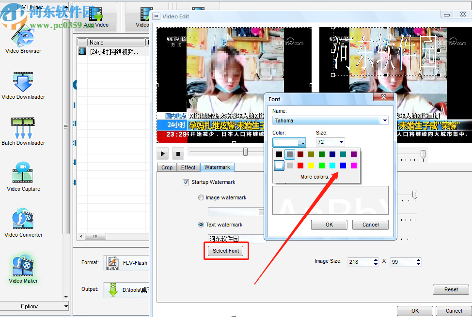 5.输入文字水印内容之后,我们点击下方的Select Font这个按钮可以打开设置文字样式的界面,有颜色、字号、字体等参数可以选择设置。