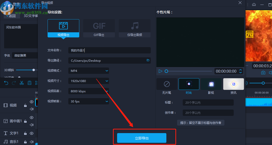 8.在导出保存的界面中我们根据自己的需求设置好参数之后,点击界面右下角的立即导出这个功能按钮就可以将视频导出保存了。