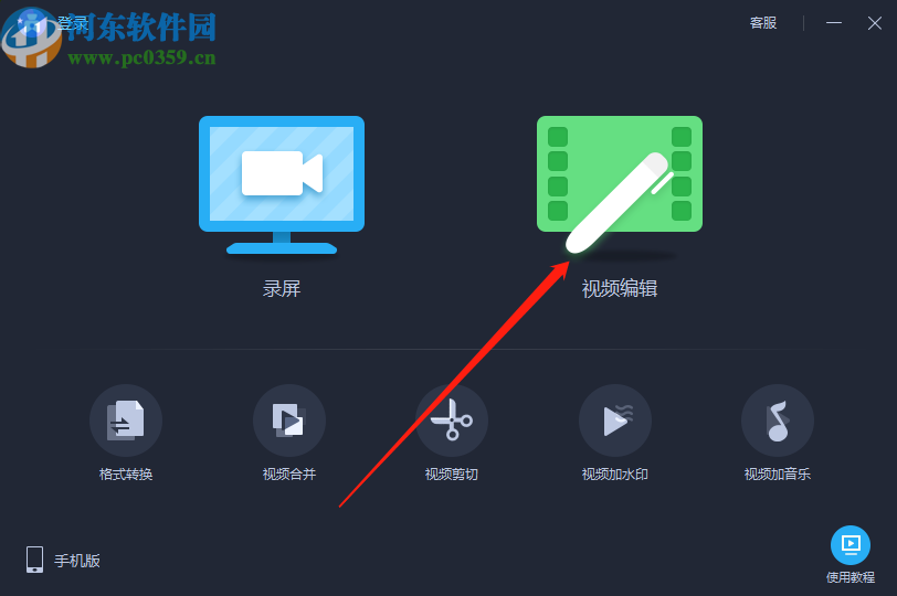 1.首先第一步我们打开软件之后,在软件的主界面中点击视频编辑这个模块,进入到编辑视频的功能界面中。