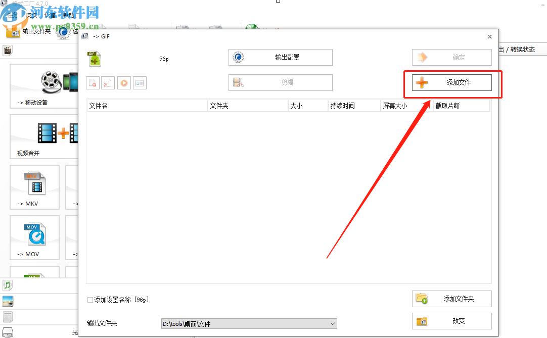 2.点击转换成GIF功能之后,在界面中点击添加文件按钮,点击添加之后就可以准备选择想要转换的视频文件了。
