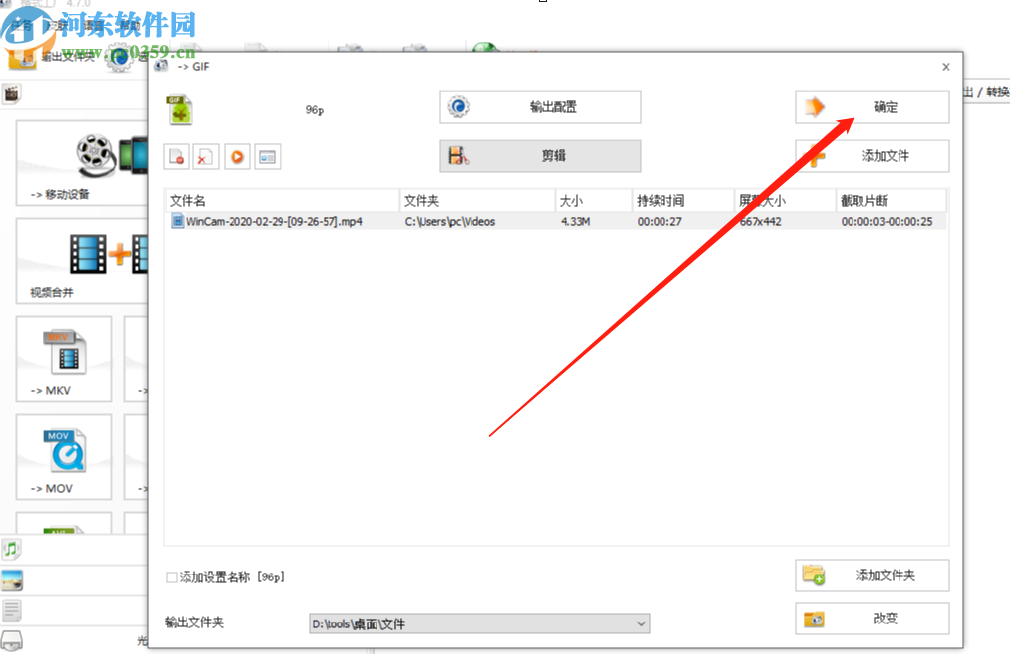 6.点击确定选择好想要转换成GIF的片段之后,我们点击界面右上角的确定按钮即可完成转换GIF的任务相关设置。