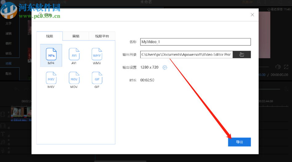 6.之后我们移动播放视频的指针,可以查看动画效果,满意之后即可点击导出按钮导出添加动画之后的视频。