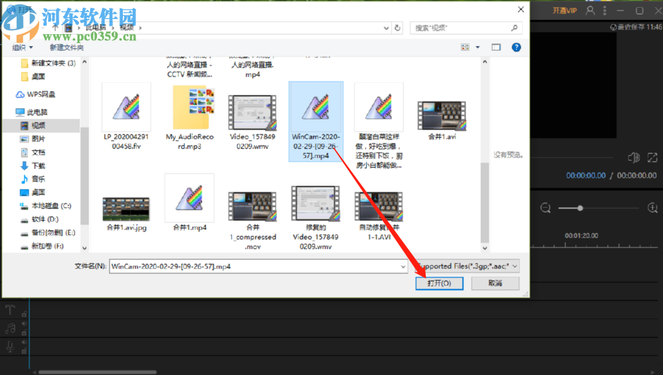 2.点击导入文件之后在出现的选择文件界面中,我们选中目标视频文件之后点击右下方的打开按钮。