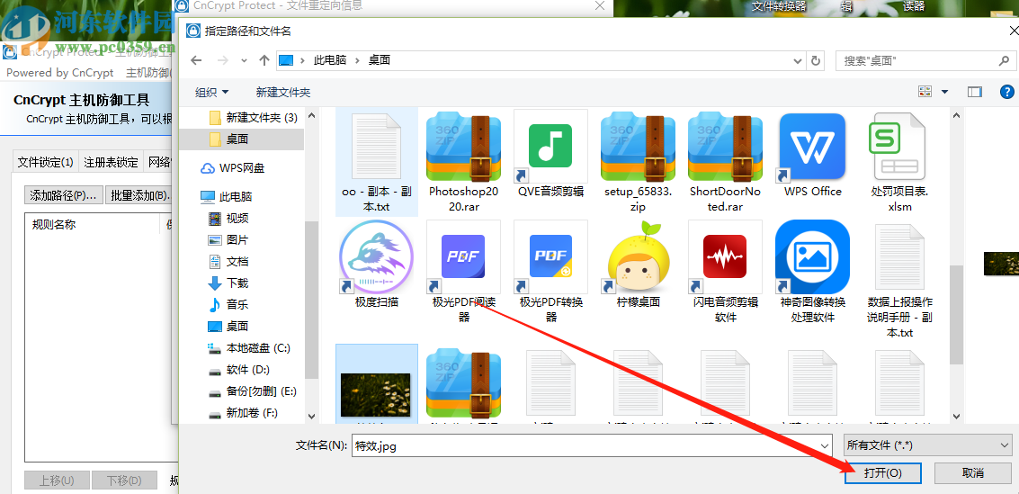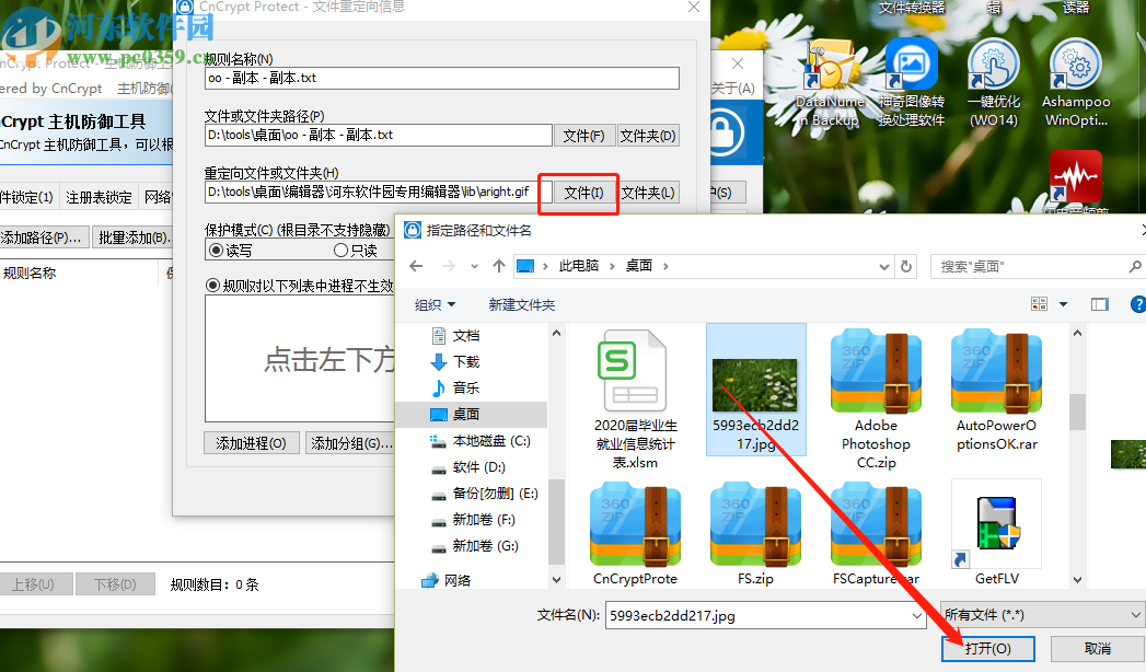 4.点击文件按钮之后,在出现的选择文件界面中,选择想要重定向的文件即可,选中之后点击右下角的打开按钮。
