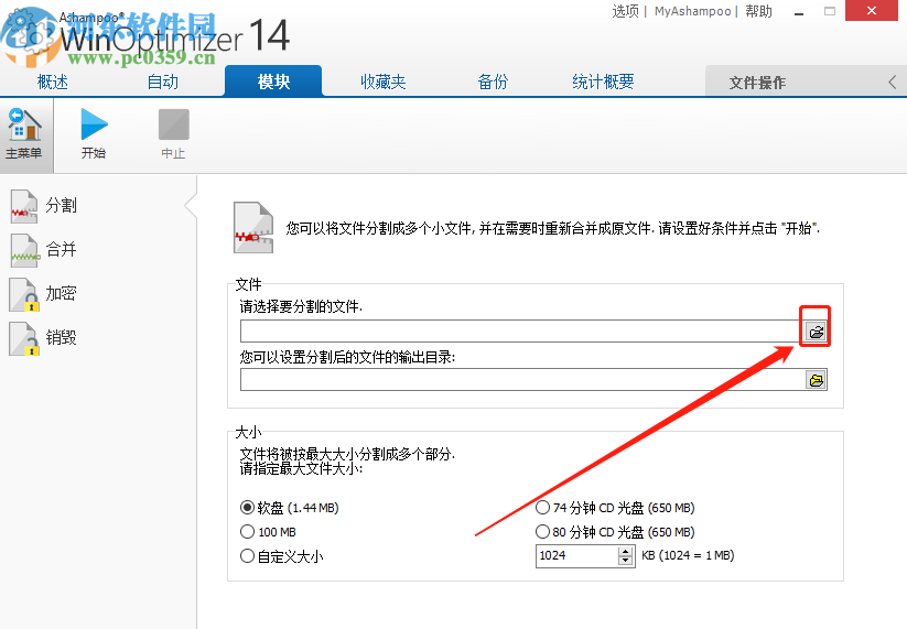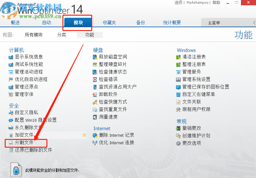 1.首先第一步我们打开软件之后,切换到模块界面,然后找到分割文件这个功能选项点击进去。